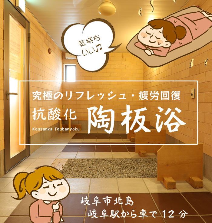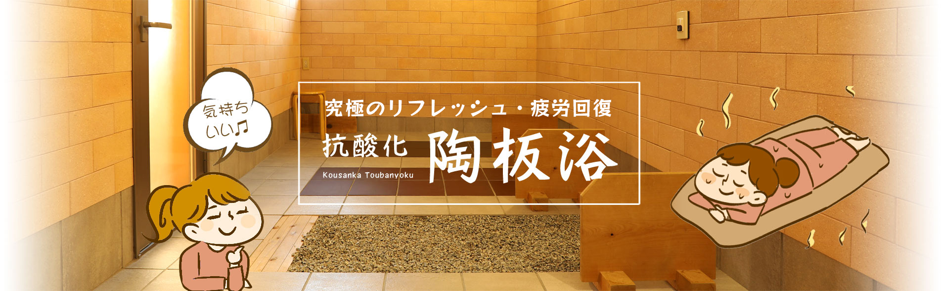 陶板浴は、抗酸化力のある空気環境の中で体を温めることにより、 自己免疫力を高め体の活性酸素を除去し、調子を整えます。 陶板浴は、入ることによって温熱効果を得られるだけでなく、疲れや免疫力のアップや、新陳代謝の促進、冷え性の改善、美肌の維持、癌といった持病の回復や、疲れやストレスの回復などにも効果を発揮します。